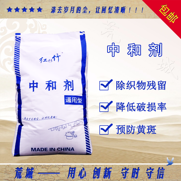 多數(shù)堿類分子都含一個(gè)金屬元素及羥基,多數(shù)酸類分子含非金屬元素以及酸根,堿遇酸,兩者都失去原有的性質(zhì),生成鹽和水,稱為酸堿中和反應(yīng)。在用堿類洗料進(jìn)行織物水洗后,會(huì)進(jìn)行多次過水,但受諸多因素影響,不能保證洗后沒有堿性成份殘留,殘留的堿性成份,可以使織物變灰變黃,也會(huì)使織物手感發(fā)硬。所以用中和劑與殘存堿性成分發(fā)生中和反應(yīng),中和織物水洗后殘留的堿以及水中可能存在的堿性物質(zhì),調(diào)節(jié)PH值,使織物的PH值接近人體的體表PH值范圍(5.8~6.5)。